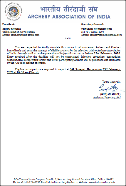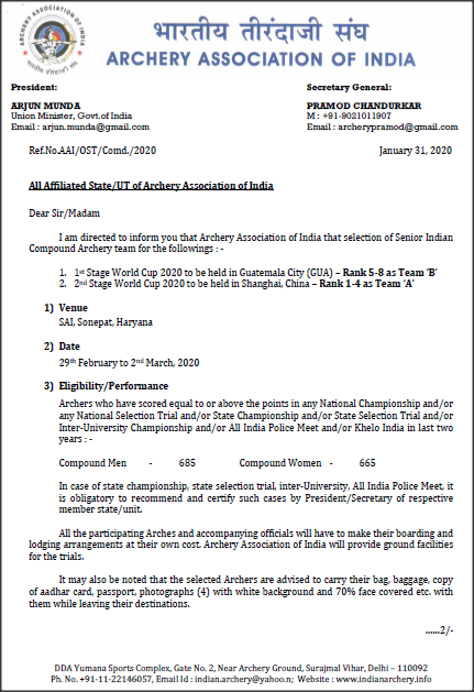 This is a final call for all Compound Archers from Tamil Nadu state who have the eligibility score