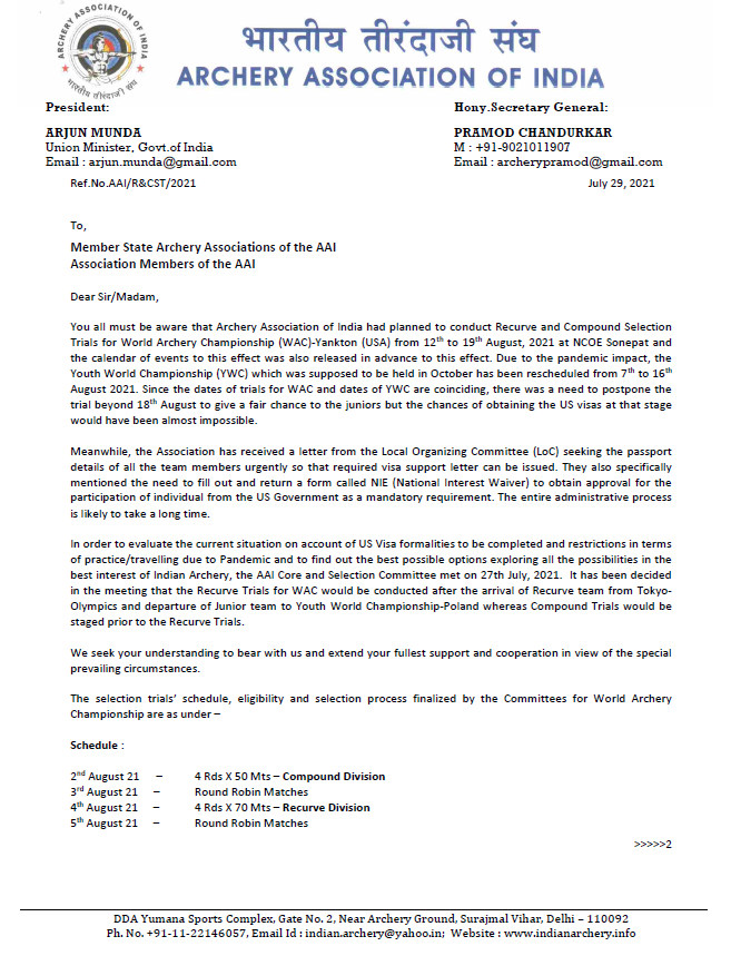 Tamil Nadu Olympic Association (TNOA) and Archery Association of India (AAI)
